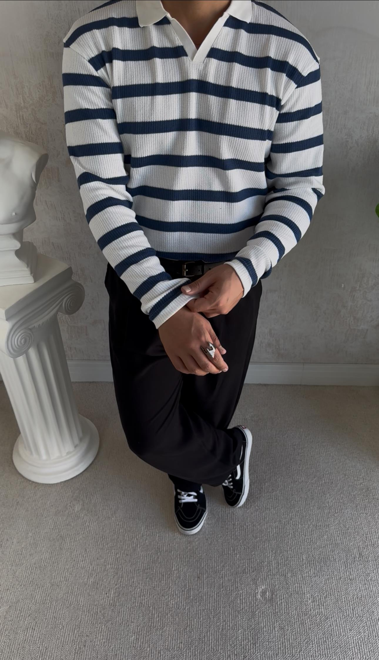 GRİ ÇİZGİLİ TRİKO BEYAZ ÇİZGİLİ TRİKO