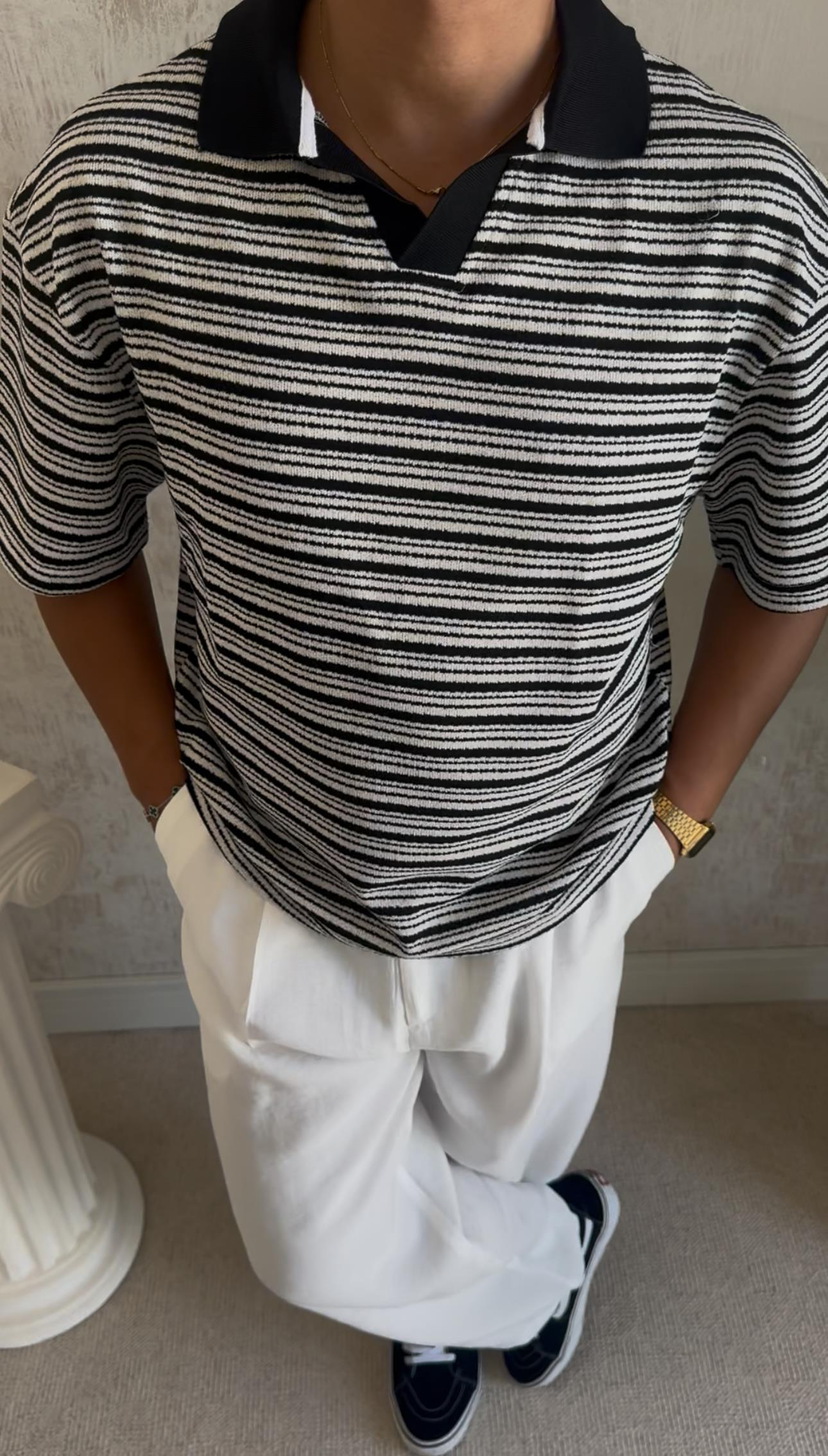 SİYAH ÇİZGİLİ POLO YAKA TRİKO